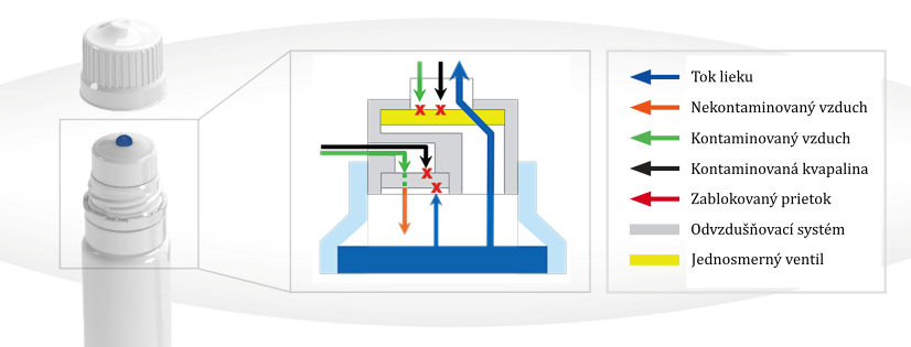 Pretože pacient je na prvom mieste, tento inovatívny systém spája všetky požiadavky pacienta. Viacdávková fľaštička s modrým hrotom vytvára kvapky rovnakej veľkosti. Modrý hrot na kvapkadle slúži pre lepšiu presnosť pri zameraní na oko, má pomocnú, tzv. vodiacu funkciu. Pri stlačení fľaštičky sa uvoľní vždy len 1 kvapka, ktorá má rovnaký objem, je presne kalibrovaná. Kalibrované kvapky znamenajú z hľadiska liečby presné dávkovanie pre lepšie dodržiavanie liečby. Ľahko sa vytlačí aj posledná kvapka.